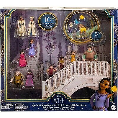 Dive into magical adventures with the Disney Wish Kingdom of Rosas Character Set! Featuring 10 beloved characters and 3 animal friends, this set sparks imagination and brings the enchanting world of Rosas to life for kids aged 3 and up.